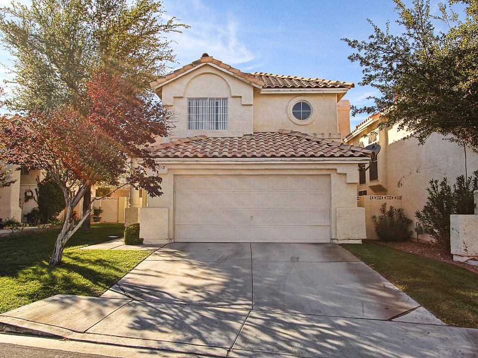 Beautiful Summerlin North Home. 2 Story: 4 bedrooms with 2.5 baths 2 cars garage. Home with Granite countertop & downstairs tile flooring. Brand New Flooring on upstairs Master bathroom and guest bathroom. Spacious floor plan. High ceiling from entrance to living room. Gas fireplace in the family room. Master has vaulted ceilings, walk-in closet and garden tub. Closed to Downtown Summerlin shopping mall and Summerlin Parkway.