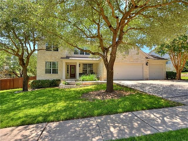 Just Reduced! Beautiful 5 bedroom, 4 full bath Steiner Ranch home. Open living area with a walk out covered patio to the pool. Dedicated media room, office, formal dining room, utility room with sink and built in fold down ironing board, large game/great room. Large master suite, spacious guest rooms, gourmet style kitchen that opens into the living area with a pool view, granite counters with double ovens and 3 car garage! Gorgeous pool and hot tub with covered patio.