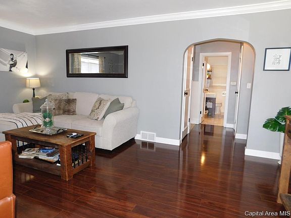 ADORABLE BUNGALOW with UPDATES GALORE! Straight out of HGTV! Improvements include: ALL NEW Kitchen including Cabinets, Solid Surface Countertops, S. S. Appliances (they STAY!) HIGH END Laminate Flooring, CROWN MOLDING and Base Trim. Updated Windows & New Front Door. TOTALLY Gutted Bath and added New Tile Floor, Tub, Sink, Stool and SUBWAY Tile! Custom Blinds and CUTE Window Treatments that STAY! Finished Bsmt with SANGAMON RECLAIMED WOOD/Tin Bar. LARGE Additional Deck and Pergola built around a Mature Tree with a PRIVACY WALL! COVERED Patio on Side of Garage for extra Entertaining Space.