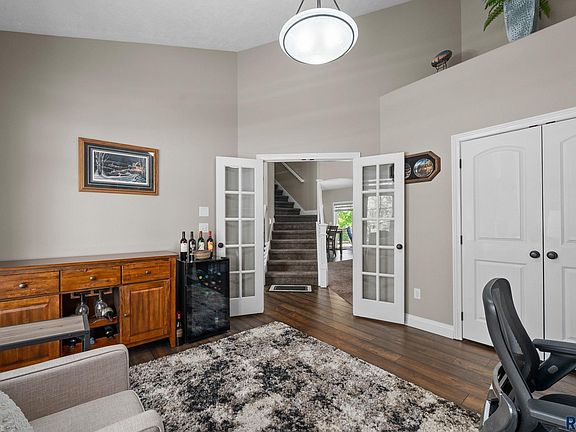 Curb appeal at its finest! This stunning two-story walkout home immediately catches the eye with its charming front porch and impressive 8-foot entry door. Step inside to find a bright, inviting entryway and living room with soaring vaulted ceilings, an abundance of natural light & fireplace. This meticulously maintained residence offers 5 spacious bedrooms, 4 bathrooms, 2 full kitchens, and an extended 38 ft wide 3 stall garage equipped with water hookups, floor drains & epoxy floors. The main level showcases a beautifully designed kitchen with custom cabinetry, center island & granite countertops, flowing seamlessly into the dining area and open-concept living room. Step out onto the covered deck ideal for relaxing or entertaining. Upstairs, you’ll find three bedrooms and two bathrooms, including a luxurious primary suite with a tiled walk-in shower, whirlpool tub, and generous walk-in closet. The fully finished lower level is an entertainer’s dream, featuring a second full kitchen with granite counters and custom cabinets, a spacious family room with surround sound, a cozy fireplace, and direct walkout access to the backyard that offers TWO patios! Too many updates to list (ask your agent for the list)—this is a must-see home that checks every box!