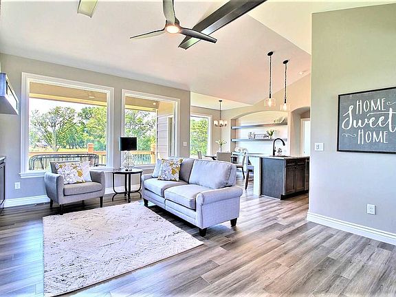 This model home is officially for sale! Come see this 5 bedroom, 3 bathroom home in the beautiful Clear Ridge Addition! The main floor features a spacious, open floor plan with large windows that bring in lots of natural light, LVP flooring, granite counters, and vaulted ceiling. You'll love sitting in front of the stone to ceiling gas fireplace in the living room. The kitchen comes with stainless steel appliances, kitchen island with eating bar, and a walk in pantry. The dining room has built in shelving and buffet with a beautiful view of the backyard. The master bedroom features a vaulted ceiling with wood beam, built in shelving, private bathroom with tile shower, soaker tub, and vanity with two sinks, and a large walk in closet. The walk out basement features LVP flooring, shiplap fireplace, wet bar with granite counters, two bedrooms, and one full bathroom. The outside features a large covered deck and large patio, sprinkler system, well, and sod.