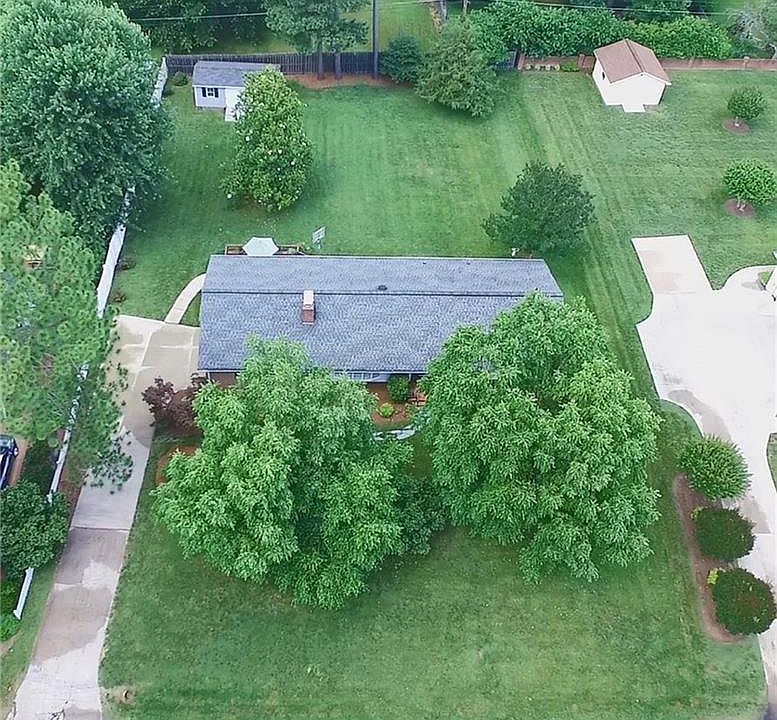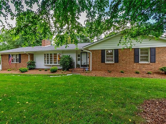 Excellently maintained Ranch in highly desirable West Burlington near Alamance Country Club. 3 bedrooms, 2 baths boasting hardwood floors, blinds, and energy efficient hot water circulation baseboard heat. 8â x 6â custom wall bookcase in hallway with 7 shelves. Family has 55â fireplace with 24â Heatmaster gas logs and grand bay window. Kitchen offers rev-a-chrome basket drawers throughout kitchen cabinets. Bedrooms are large with master boasting a walk-in closet of 7.3' x 6.11â. Covered front porch and rear deck with 2 built-in benches. "Dutch barn" storage building of 24â x 12â is insulated, wired for power, cable & phone, with multiple shelves & extensive pegboard. Motion detection lighting outside. Gorgeous mature trees abound. Lush Yard & Landscaping. Convenient to Elon University, shopping and the Interstate.