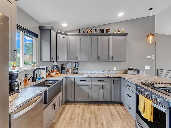 Gorgeous 3 bed, 3 bath with a 2 car garage. Complete remodel in 2019! Kitchen absolutely beautiful. Open concept with a granite water fall bar, (peninsula) new cabinets, farm style sink, stainless appliances, with a gas cook top/oven. 3 bedrooms upstairs with a large Family Room/Great Room or could be a 4th bedroom downstairs with a half bath. All bathrooms completely redone, new windows, stucco exterior, 2 patios in backyard (one off kitchen, one off primary bedroom). Breeze Air Cooler. Backyard is fully landscaped an oasis for just hanging out or family BBQ's. Out the living room window you will see beautiful views of Mt. Garfield or the city lights. Super centrally located. A must see inside!!! Too many great upgrades to list. A very well done remodel. No HOA