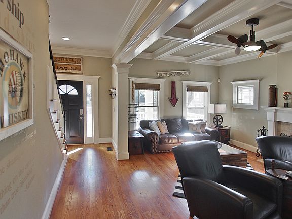 Enjoy the front porch swing of this freshly painted 3BD/2.5BA Craftsman, or enjoy the screened-in prch/deck combo off the kitchen. Deck stairs lead to fenced back yard and down to the patio of walk out bsmnt. Partially finished basement w/carpeted bonus office/room. Ent. room w/built-in book shelves, painted concrete flrs, windows overlooking back yard, with area rough plumbed for possible bathroom addition. Mstr includes his/hers closets, a mstr ste with dbl vanities, tub, and dual head shwr w/bench. LR has coffered cielings. New HVAC, water heater, toilets, and paint.