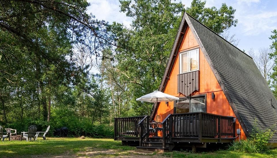 This charming loft style 2 Bedroom, 1 Bath A-frame cabin presents a fantastic short-term rental investment opportunity!!! Nestled in a serene location and within WALKING distance to a picturesque Castle Rock lake and Silver Lake, it's ideal for small families or couples seeking a peaceful getaway. Just minutes away from boat launch and on ATV/snowmobile routes. Enjoy year-round activities that this area has to offer including fishing, hiking, swimming, hunting and much more. The outdoor space offers a perfect spot for morning coffee or evening stargazing, bon-fire with a shed to keep all your favorite toys. It's rustic yet modern appeal, makes it a standout choice for vacationers. Also, there is a 3 Bed septic done in 2021.Don't wait and schedule your showing today.