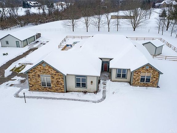 Stone front ranch. Situated at the back of the property and past the pond you'll find this gorgeous home where entertainment space abounds. Walk up onto over 1400 sq feet of deck space where the current owners have recently added an awning to provide some shade and exterior speakers as well. From here you'll have the best view of the 36x18 inground saltwater pool that also features it's own patio space to relax poolside. Rounding out the exterior amenities are a 13x13 pool house as well as a 36x24 detached 3 car garage... and we haven't even gotten inside! Come inside through the screen porch and into the kitchen with cherry cabinets and granite countertops. The kitchen features a bar, a breakfast area or a more formal dining room as well. Spacious master w/ walk in closet and large bathroom. Huge rec room that could be a 4th bedroom or awesome game room! You won't be disappointed with this home!