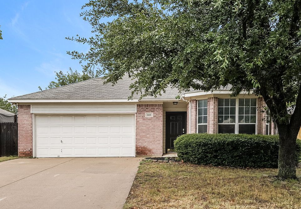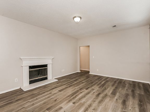 Come see this all-brick rental home with three bedrooms and two bathrooms in Denton. A cozy fireplace adds ambiance in the living room, which features attractive vinyl plank flooring, a row of big windows with white blinds, and a lighted ceiling fan. Quartz countertops, a sizable pantry, and ample all-white cabinets outfit the kitchen, which has a pretty bay window in the dining area. In the primary suite, you'll find a large walk-in closet with built-in shelves plus a generous private bathroom with updated fixtures. Outside, you'll have a fenced-in backyard with a lawn that your pets will love, along with a spacious patio and an attached two-car garage. Arrange your personal showing today!