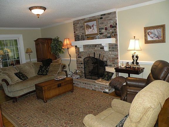 Great kitchen w/corian countertops and stainless appliances. Hardwoods in kitchen, breakfast area,dining room and greatroom, 2 bay windows, sunroom, large patio in back plus wired workshop,large fenced back yard, master bath has double vanity. Gas logs in fireplace do not remain. Home Warranty.