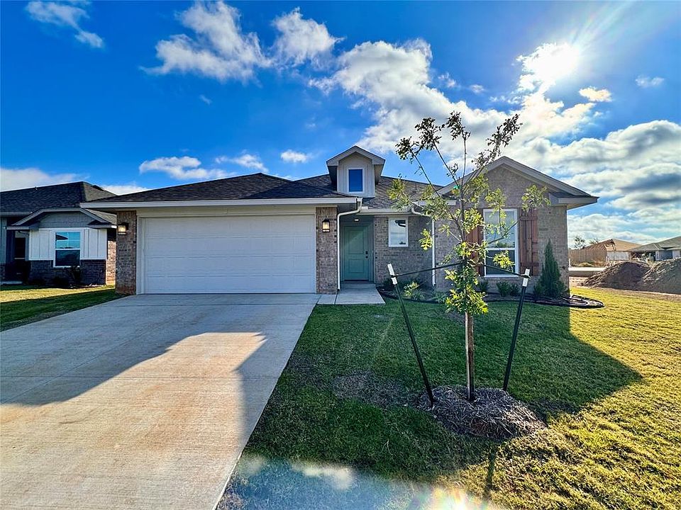 New construction that checks all the boxes. Closing costs covered *ask for details*, Video Doorbell, Tankless Water Heater, Full Landscaping Package, Stainless Steel Samsung Appliances, Built In Tornado Safety Features, Industry Leading Energy Efficiency Standards, Warranties and so much more! Aspen Ridge has an incredible location with easy access to I-40, I-240, and a very short distance from Tinker Air Force Base, Lake Stanley Draper and Lake Thunderbird State Park. From an easy drive to all things OKC Metro or if you want to go explore the outdoors around the lake, Aspen Ridge community is the place to be! What an exquisite three-bedroom, two-bathroom home! The living room has a cozy fireplace and plenty of room for entertaining friends and family. The kitchen features gorgeous custom wood cabinetry, stainless steel appliances, granite or quartz countertops, and an island with lots of storage. It has an elegant primary bathroom with a large soaking tub and a tiled shower. The long covered back patio is perfect for enjoying a cup of coffee in the morning or ice tea in the evening. Even the utility room has a luxurious feel with the charming window, cabinets and built-in shelves.