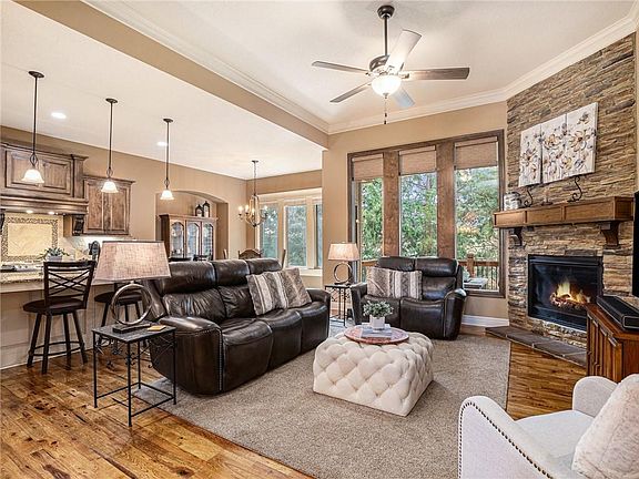 Welcome to this stunning home nestled at the back of a cul-de-sac, offering a serene retreat surrounded by nature. As you step inside, you'll be greeted by an open first floor flooded with natural light from large picture windows, providing dramatic views of the outdoors. The kitchen is a standout feature, boasting an incredible design with a spacious island, gas range, large walk-in pantry, and ample cabinet space. The primary suite includes a huge walk in closet connected to the main floor laundry room, an incredible bath with double shower heads and private access to the covered deck. The full finished basement adds valuable living space, with a spacious rec room featuring a wet bar, two bedrooms, a full bath, and plenty of unfinished storage space that could be utilized as a workshop. Additional features of this home include zoned HVAC, epoxied garage floors, epoxied floors in the unfinished basement areas, and more. Outside, the nature-filled backyard offers a covered deck, covered patio, and extended patio, providing the perfect setting for outdoor entertaining. Walking distance to community pool, award winning schools, and the new Cedar Niles Park with miles of nature trails. Forest View subdivision features one of the most photographed waterfalls in the area, a huge zero entry pool, water park area, sand volleyball, sport courts, playground, and several grilling/picnic areas. This one is perfect!