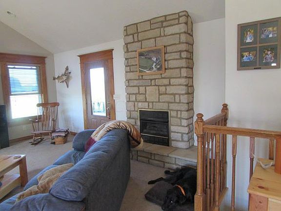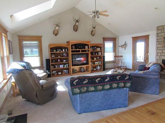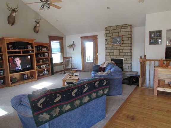 4 bedroom 3 full bath country home with great views. 24'x40' open kitchen and living room with vaulted ceiling, can lighting, built in surround sound speakers. Amish built, solid oak trim and cabinets. wall cabinets are 42'' tall. Whole house has solid wood trim and solid 6 panel doors. Main floor has 3 bedrooms and two full bathrooms. huge main bathroom with ceramic tile floor, 6' ft double bowl vanity and medicine cabinet that is also Amish oak. Main floor laundry with full cabinetry. Central located bar/entertainment area. Finished basement also has full bath. 6' ft x 60' ft covered front porch, exposed ag concrete patio, fire pit area. detached 5 car 30'x60' garage that is every guys dream. garage gas 13' finished ceiling. New addition was added 2007. A truly must see home.