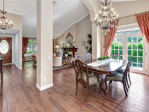 Rarely available corner lot single story 4 bedroom 3 bathroom home in the heart of Mission Viejo. The perfect location and privacy abound with a place that is second to none.. Mature beautiful front yard landscaping leads to a well maintained lightly lived home. As you walk through the front door notice soaring ceilings, high quality hard wood floors throughout, a spacious living room with marble fireplace and separate formal dining room. Around the corner is a spacious chief's kitchen with granite counters, custom lighting, stainless steal appliances and large island. French doors lead to the oversized back yard with fruit trees, fire pit, built in bbq and useful side yard with mature landscaping. A spacious 4 bedrooms with 3 remodeled bathrooms complete what only can be described at the perfect home. No association dues, low tax base, award winning schools, freeway close, near by shops, restaurants and entertainment create the true Orange County lifestyle.