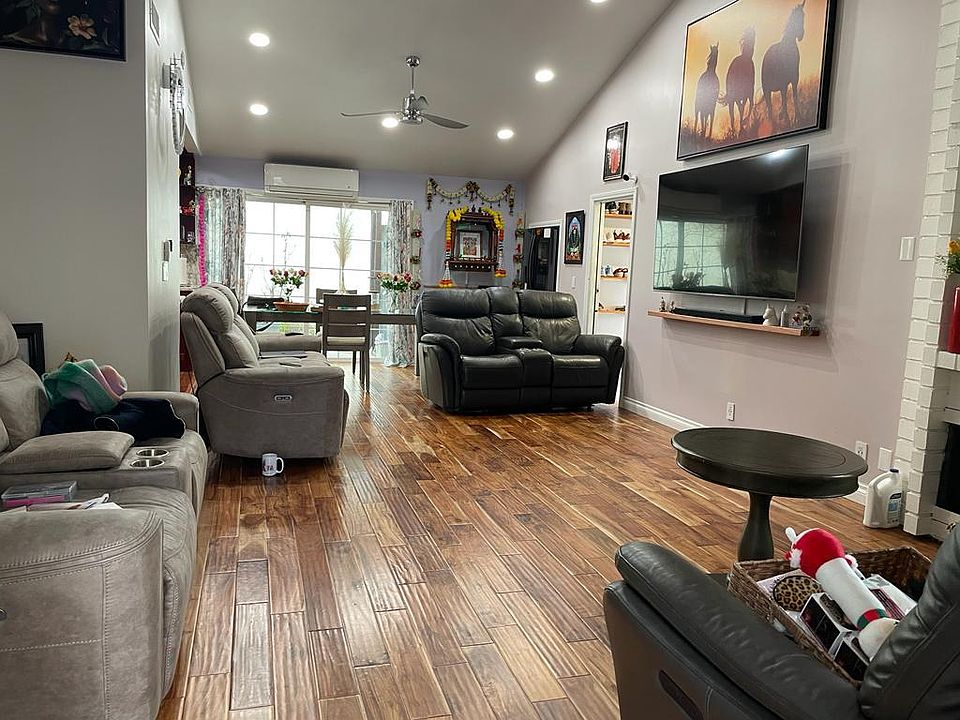 Single family 6-bed, 2-bath Valencia home with nearly 2000 sq. ft. Open floor plan, wood flooring, and designer touches throughout. Modern kitchen with stainless appliances, and granite counters. Additionally, the property features a solar panel, equipped with a Tesla charger.