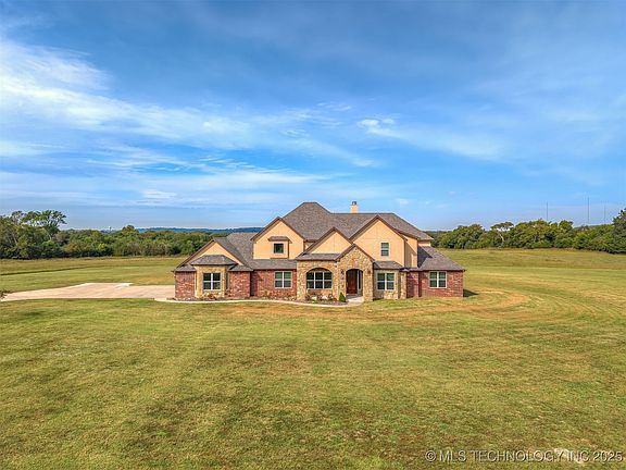 Welcome to this stunning custom built home, nestled on 5.5 acres of serene countryside. With over 5,000 sq ft of thoughtfully designed living space, this home boasts 6 spacious bedrooms and 4 and a half beautiful bathrooms. The heart of the home is the gourmet kitchen, featuring exquisite granite countertops throughout, perfect for both everyday meals and entertaining guests. Rich hardwood floors create warmth and charm in this home, while the expansive gameroom, detailed craft room and tv room offer endless possibilities for relaxation and entertainment. The spacious primary suite boasts access to large walkout balcony overlooking stunning views. Whether you're hosting a family gathering or enjoying quiet time in your personal retreat, this home has something for everyone.