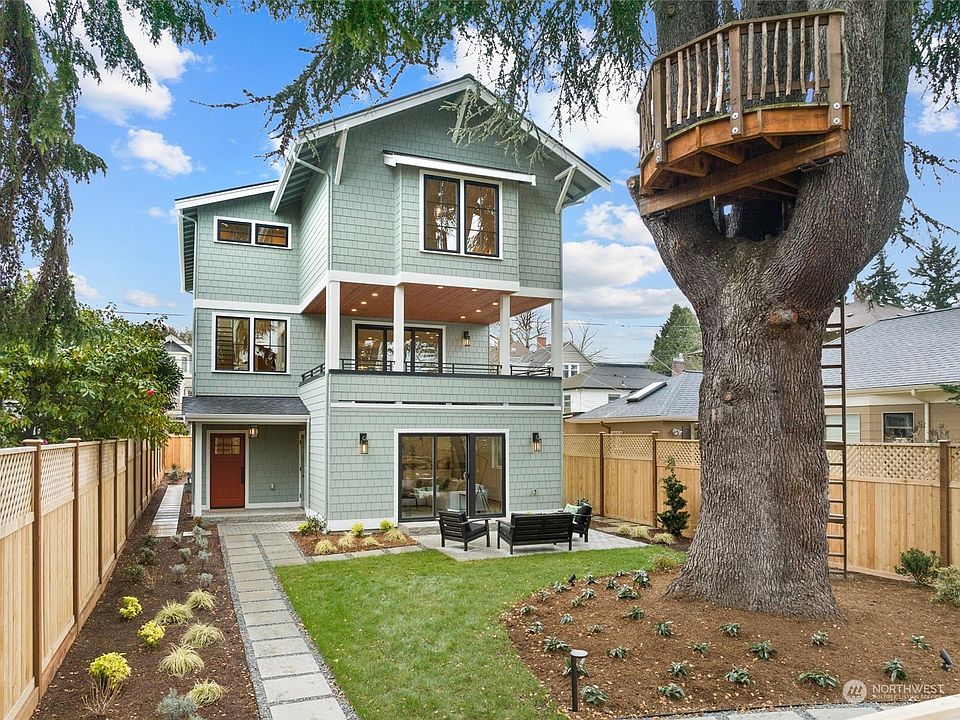 Timeless elegance, modern design elements and superior craftsmanship abound from this C4Digs new construction home on top of Queen Anne. Great room concept & coveted 4 bedrooms, 2 full baths & laundry up make this home ideal for entertaining & everyday living. Quartz, tile & stainless steel embellish the stylish island kitchen featuring walk in pantry. Stacking sliding doors extend year round entertaining outdoors w/a fully covered deck. Ground level entry offers a 2nd entrance to the family room with wet bar for ADU/WFH potential. Sliding doors lead to huge, fully fenced front yard. 2 bedrooms & full bath complete this flexible space. 2 car garage, old growth tree with tree house intact. Move in ready!