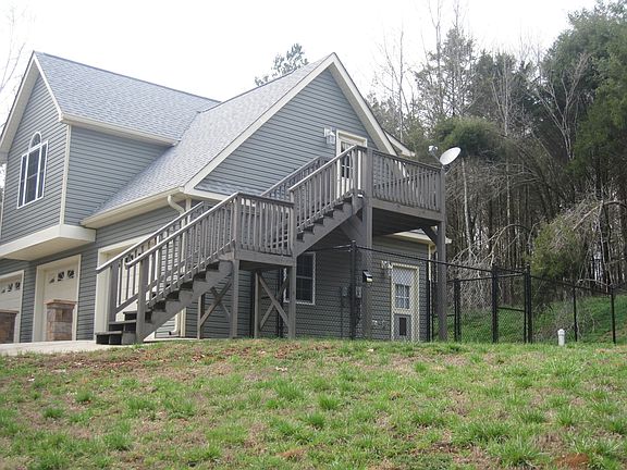 Icing on the CAKE Home on top!!! 3 car garage with home above. Garage contains 3 bays, full bath (hookup for grooming table. UPPER level: 1 Br,1 full bath up also large living room, kitchen with appliances, lots of closets. Business or home in woods approx 2 miles off I40. 6' black fence at rear of home. Doggie door to runs. Situated on 5.113 acres.