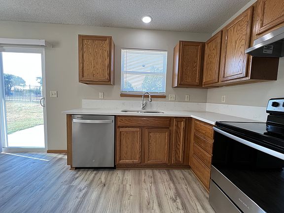 FENCED YARD, PARK VIEW. This is a 3 bed, 2 bath spacious SINGLE FAMILY ranch style home, ZERO ENTRY (no steps), with 2 car garage. Video Tour Available upon request. Updated with quartz countertops and new flooring throughout, luxury vinyl flooring in main living areas. This is a Quiet Family Friendly Neighborhood in a high demand 2006 development with easy access to Highway K96, minutes from WSU, Wesley Medical Center, dining and shopping. Home is spacious, clean, and well maintained with open floor plan and wide interior doorways. Master bedroom able to accommodate a king size bed and has a private full master bath, and walk-in closet. The spacious kitchen with eat in dining area is equipped with stainless range, dishwasher, and refrigerator with ice maker. There is a laundry room with hookups. The neighborhood is surrounded by the Dr Glen Dey Park, with large playground, walking paths, recreation facilities just around the corner! Gross monthly household income must be at least 3x rent. Min credit score 600. No felonies. NO SMOKING on property!! SUPPORTING DOCUMENTS REQUIRED with application: valid ID, employment and income verification documents must be provided and must be uploaded on application website. Small dogs ok with $300 non-refundable per pet remediation-deposit fee and $30 monthly per pet rent (2 max). Security deposit and move-in fee is total of 1 months rent. Accepting only online ACH rent payments through secure rental portal, no cash or checks. Tenants pay all electric, water, trash service, and lawn care. Request an invite to apply or click the Apply Now link. If you have a current application, please forward it. Applications are reusable for 30 days for just 1 application fee and you can send to multiple listings at no additional cost. If moving within 30-45 days we recommend considering applying now. Cross listed. NO SMOKING on property. Renter is responsible for electric, water, trash service and yard care. Documentation required with applications