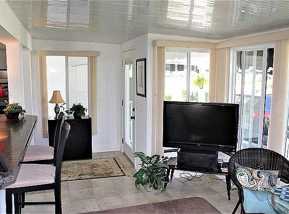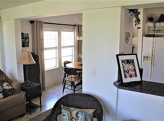 3 BR 2 BA 1344 SQ FT Home with 240 SQ FT addition, Beautifully furnished, Open Split Floor Plan. This great home is perfect for entertaining with a walk around kitchen and pass through to a front facing family room. large kitchen with an eat in dining area, large master suite with closets galore, double covered carport, beautifully landscaped yard, Large golf cart shed. Fenced in yard. New roof in 2017. Move in ready, there is nothing left to do to this charming home.
