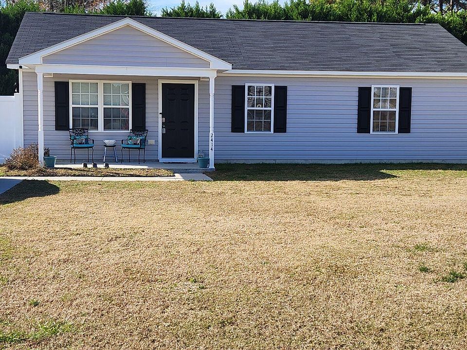 Charming 3 bedroom, 2 full bath ranch style home located within city limits. All stainless kitchen appliances and washer and dryer included! Kitchen has contemporary white cabinetry along with gray luxury vinyl plank flooring and carpet throughput home. Covered front porch and fenced backyard with shed. This is a must see!