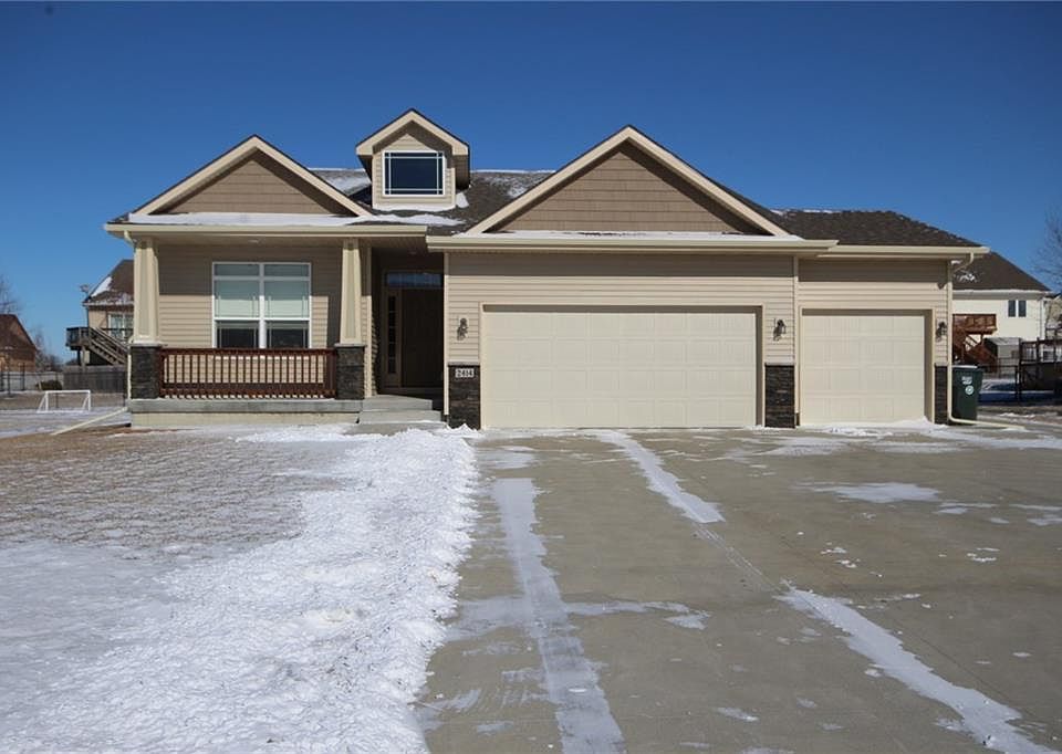 Venture Builder's plan offers 3 bedrooms, 2 bathrooms, and 3 car attached garage. Split Bedroom Plan with two bedrooms in front with a full bath in between each bedroom. Open kitchen with dark stained cabinets and stainless steel appliances, granite countertops, backsplash tiles, center island and laminate flooring in kitchen and living area. Entryway has beautiful easy to keep ceramic tile as well as ceramic in all bathrooms and laundry room. Beautifully carpeted master bedroom with double vanity in bathroom, tiled shower, and walk-in closet. Finish the basement your way with two egress windows allowing two more bedrooms, if desired! Well maintained yard, deck and 6' fence in backyard with two points of entry. Extras: Vinyl finished 12 X 10' shed, finished cement slab next to the garage, all window treatments, washer/dryer, water softener, whole house filter, and all TVs/stands mounted on walls.