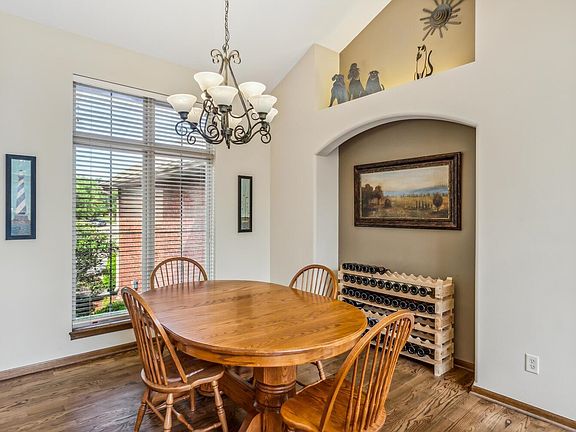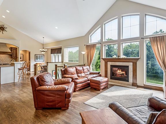 Wonderful ranch home that backs to a wooded tree row in The Hawthorne...great neighborhood amenities in Andover Schools! The first thing you will notice about this house is the incredible amount of light, vaulted ceilings, number of windows & open floor plan!!! The main floor boasts a living room with gorgeous wood floors and fireplace surrounded by windows, dining area with wood floors, beautiful kitchen with wood floors, Corian counters, eating bar, island, range hood & walk-in pantry. The split bedroom plan offers a master suite with a private bath with his/her sinks, tile shower and a huge walk-in vaulted closet. 2 additional bedrooms, hall bath, spacious laundry room & drop zone off the kitchen complete the main floor. Holding additional living space, the finished mid-level walk-out basement has a fabulous rec room, fantastic wet bar, 2 bedrooms with walk-in closets, full bath, flex room for exercise or hobby room & tons of storage. Backing to a wooded tree line, enjoy the backyard from the large patio with a built-in firepit. This home has a sprinkler system, pristine landscaping & an iron fence. Don't miss this one! Class IV roof 2018.