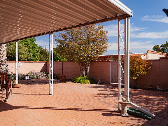 Fabulous, well maintained 2 bedroom extended end unit townhome in 55+ community in convenient central location! Well insulated = low utilities. Extended living and master bedroom larger than other 2 bedrooms in community. Newer AC, ceiling fans in all rooms, big closets and great storage throughout! Great private, gated entry foyer enters into large living room, dining area and separate den area. Open with high ceilings, updated carpet and carpet pad. Large master suite with extended sitting room and good sized guest room both with great closet space. Recently updated Kitchen with white subway tile backsplash and new painted white self-closing cabinets with new pulls, lots of storage, new garbage disposal, and ample counter space. Easy grocery access from carport to large pantry off kitchen. Large laundry / utility room off kitchen with storage and built in ironing board. Roomy bath hosts tub/shower combo and dual sinks with newly updated flooring. Very private paver patio east facing back yard with plants, grapefruit tree, mountain views and private gate to common area between homes.
