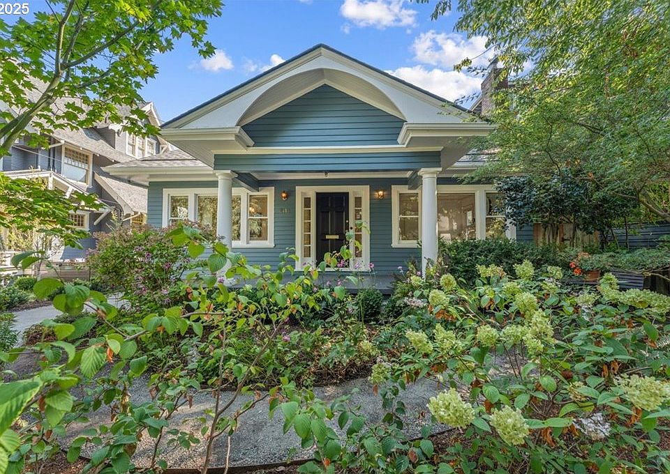 Located on a quiet, tree-lined street, this historic 1923 Irvington Bungalow will surprise you with thoughtful updates and hidden versatility. This classic gem is move-in ready and awaiting your personal touches. Set above the street with welcoming landscaping and covered porch, enter your spacious Living Room with oak hardwood floors, a Gas fireplace, and airy formal Dining space. The sizable classic Kitchen offers new LVP flooring, updated lighting, plenty of cabinetry, shelving and a breakfast nook.Connected circular-flow on the Main floor with two bedrooms including one as the perfect office overlooking the backyard. Two additional coat/storage closets, storage nook and Full Bathroom with charming built-ins and tiled floor. The Second Floor offers a 3rd bedroom, a Primary bedroom with full Bath including a Stand-up Shower. The finished Lower Level offers you the flexibility for a guest suite, additional family room or multigenerational living with a full bath and kitchen. The private Backyard is easily accessible through the Mudroom featuring low-maintenance mature trees, shrubs and easy patio living for outdoor socializing and grilling. Oversized 1-Car Garage includes built in shelving for your outdoor gear. Updates include a new Roof (house+garage), new interior+exterior Paint, some new Light fixtures, new LVP kitchen Flooring. Enjoy this exceptional location with an 81 Walk Score, just a few blocks to parks, coffee shops, boutiques, restaurants on Broadway and highly rated schools. Irvington is celebrated as Oregon’s largest historic district, known for its historic housing types, enchanting streets, and connections to amenities and community. A true Irvington treasure ready for its next owner! [Home Energy Score = 1. HES Report at https://rpt.greenbuildingregistry.com/hes/OR10241947]
