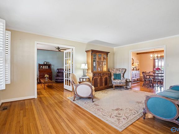 Perfectly situated in a prime location, this home blends timeless charm with modern convenience. Just a 2-minute walk to Huntsville High School or a 2-minute drive to shopping and dining, it offers the ideal combination of accessibility and comfort. This 3-bedroom, 2-bath gem boasts pristine hardwood floors, elegant plantation shutters, crown molding, and French doors leading to a cozy den complete with a gas log fireplace. The formal dining room looks out to a spacious, covered deck overlooking a beautifully landscaped backyard perfect for entertaining or quiet evenings at home. Homes in this sought-after neighborhood are rare to market, don’t miss your chance to make this one yours!