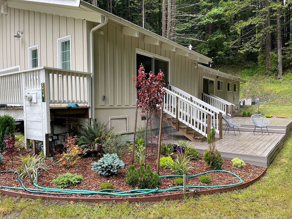 This beautifully renovated 3-bedroom, 2-bath house with a versatile bonus room offers the perfect mix of modern comfort and natural serenity. Situated on a large lot surrounded by towering redwood trees, this property provides a peaceful retreat just minutes from town. Step inside to an open, airy layout with vaulted ceilings and tasteful modern finishes throughout. The interior features updated flooring, custom tile work, and a spacious living area filled with natural light. The sleek, modern kitchen is equipped with stainless steel appliances, custom backsplash, and plenty of counter space for cooking and entertaining. A cozy built-in library adds a unique touch of charm, while the bonus room provides ideal space for a home office, guest room, playroom, or creative studio. Enjoy outdoor living on the south-facing deck, perfect for relaxing among the redwoods. An oversized two-car garage offers ample storage or workspace, and the professionally maintained landscaping is included in the rentso you can enjoy the beauty without the upkeep. Property Highlights: 3 bedrooms, 2 updated bathrooms Bonus room for office, guests, or creative use Vaulted ceilings & abundant natural light Modern flooring & custom tile work Stainless steel appliances in a stylish kitchen Attached 2-car garage Large redwood-surrounded lot with a south-facing deck Quiet Bayside location near town, schools, and trails Lease Terms: Rent: $3,150/month One-year lease required No pets Tenants responsible for all utilities Owners pay for professional landscaping