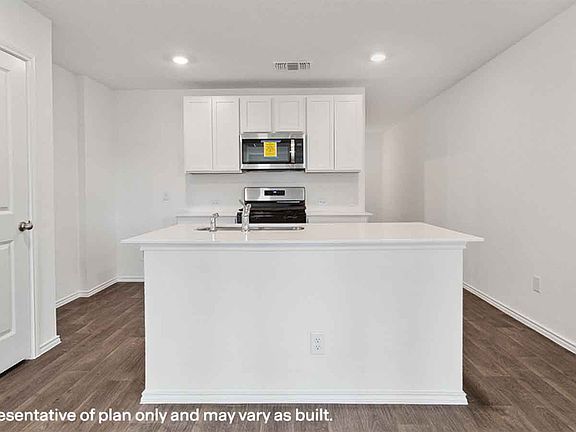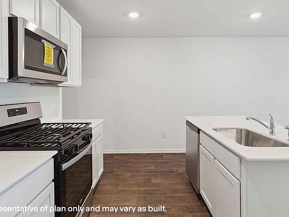 Welcome to 2414 Rose Gold Drive, a charming single-story home offering 3 bedrooms, 2 bathrooms, and a 2-car garage. Step inside through the inviting front porch and foyer, where you'll find the utility room and convenient garage access nearby. Just off the entry, one of the secondary bedrooms is situated at the front of the home—ideal for a guest suite, home office, or flex space—located near a full secondary bathroom for added convenience. As you continue into the heart of the home, you're welcomed by an open-concept design that seamlessly connects the kitchen, dining room, and family room. The kitchen is beautifully equipped with stainless steel appliances, ample cabinetry, a walk-in pantry, and a spacious island perfect for meal prep or casual dining. The dining room opens directly into the family room, creating an airy space that's perfect for entertaining or relaxing with family. Tucked privately at the back of the home, the primary bedroom offers a peaceful retreat with its own en-suite bathroom featuring dual sinks, a large shower, and a spacious walk-in closet. An additional secondary bedroom is conveniently located nearby, providing flexible space for family or guests. With its functional layout, open living spaces, and smart design, the Caprock plan offers both comfort and convenience for modern living. Images and 3D tours are for illustration only and options may vary from home as built.