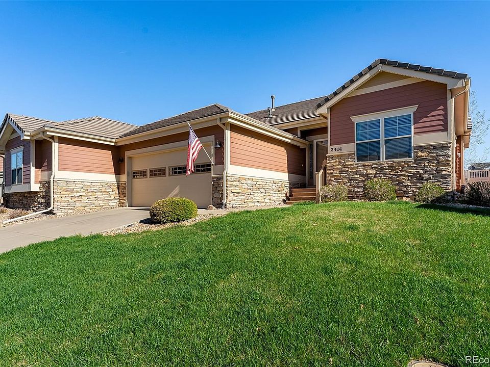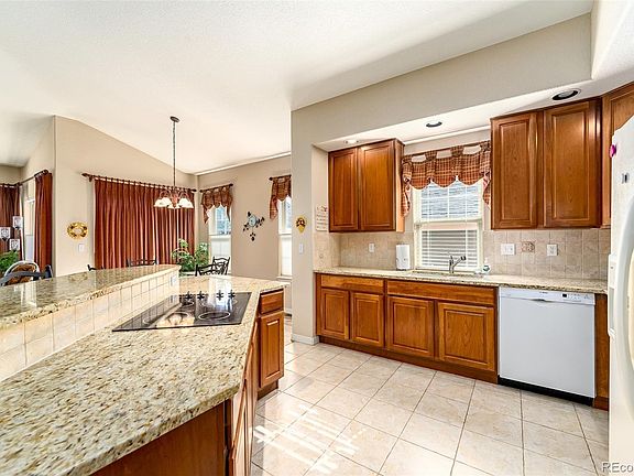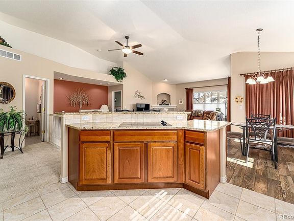 Main floor living ranch, paired home with a private yard, open floor plan and the ease of low maintenance. Vaulted open living area with a fireplace in the living room, updated kitchen with 42' cabinets, granite counter tops and tile floor plus a large kitchen island. Dining area with wood look tile and sliding door out to the back yard. Master suite on the main level with a luxury master bath featuring a soaker tub, walk in shower, tile floor and walk in closet. Office, laundry and half bath are also located on the main level. Finished basement includes two additional bedrooms, a 3/4 bath and large rec room perfect for a second family room, home theater or entertaining area. Step outside to the covered deck and your own private outdoor oasis with a large concrete patio and mature landscaping great for sipping coffee or barbequing. Move in ready. Easy access to Hwy 287 or I-25.
