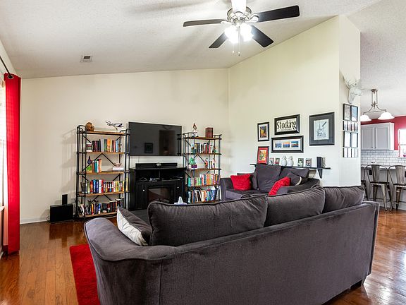 Fantastic home w/ fantastic upgrades. Vaulted ceiling in open living/dining/kitchen, with gleaming hardwood floors. Updated kitchen w/ breakfast bar, additional cabinet space, pantry, concrete countertops, subway tile backsplash, updated fixtures, & updated appliances (which stay). Split BR floor plan. Large MBR w/ 2 closets. MBA has heated floors, dual vanities, soaking tub, private water closet, and a walk-in closet (yes, there are 3! closets in the MBR!!) Spacious 2nd and 3rd bedrooms. Added cabinetry in laundry for storage. Light fixtures/ceiling fans replaced throughout home. Fenced yard w/patio and site-built storage building. Even a custom made mail box stand sets this amazing home apart! Incredible property ready for you to call home!!!