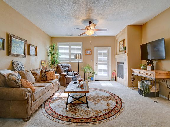 Just over 2,000 square feet in the highly sought after Astante gated community in Cabezon! Refrigerated air! Dual primary suites with one being downstairs! Upstairs has a huge walk-in closet, garden tub and a separate shower! Kitchen with stainless steel appliances, built-in microwave, recessed lighting and a pantry! Huge loft with fireplace upstairs! Elegant paint with white doors, trim and ceiling! Plantation shutters, ledges, nichos and ceiling fans make this home feel amazing!