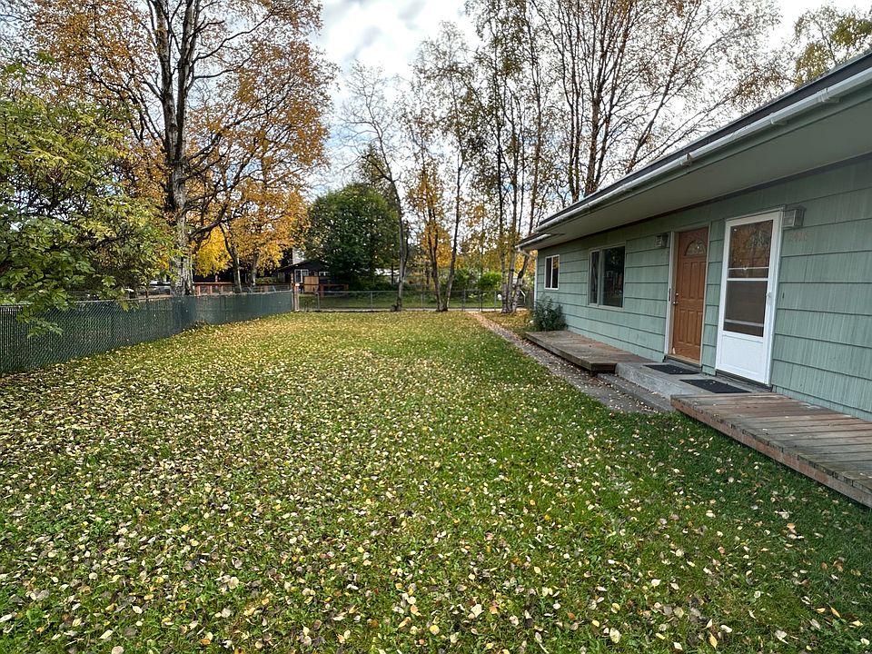 This unit shares a large, grass yard with unit 2, but also has its own private yard with storage shed.
