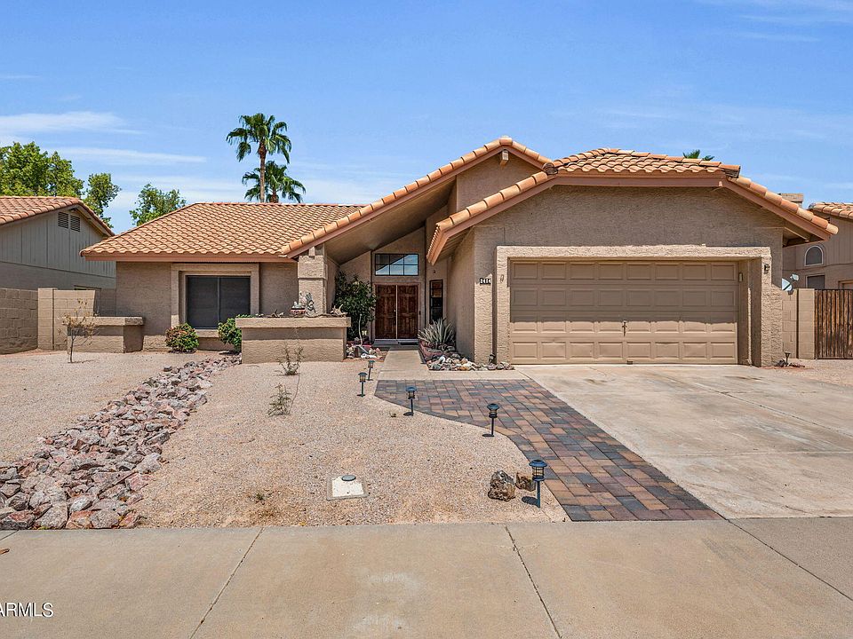 Welcome to your new home in Heatherbrook! This inviting 3-bedroom, 2-bathroom home boasts vaulted ceilings in the great room, creating an open and airy atmosphere. The kitchen features a peninsula and space for dining, with an additional dining area in the great room. Bask in an abundance of natural light that pours in through the north/south facing windows, accentuating the vaulted ceilings. Fenced private pool with a new pump. Convenient location close to freeways, shopping and restaurants. 2-car garage. Recent updates include a new air conditioner in 2020, a new tile roof in 2018, and a new pool pump and fence in 2023. Community features a large green space, pool and spa.