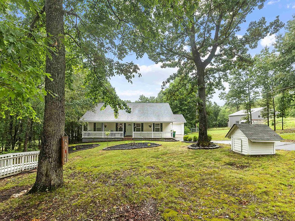This tranquil property is just the right mix of city meets country living! Enjoy your beautiful partially wooded flat acreage, with fully fenced rear yard, new in 2021. Additional updates include brand new roof in 2022, new paint throughout, and new luxury vinyl plank flooring. The kitchen cabinets gleam with a fresh makeover and new hardware. A split plan with master on the main. Check out the oversized bonus living area upstairs, and bonus room with closet, that would make a nice fourth bedroom or flex space. Did we mention the sunroom for morning reading or coffee, the wonderful deck overlooking the yard, or the covered porch that is perfect for a rocking chair or swing? Come and see why this would make a wonderful place to call home!