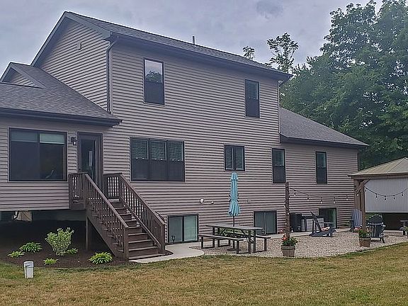 Willing to work with buyer agents! Call or text (517) 648 2090 today for a private showing! 1,695 square foot 1.5 story home with another 200 square foot Michigan room and partially finished basement with Dry Core sub-flooring, a home theater/studio with French doors, wainscoating in the main area, and plenty of storage . This home also contains a large 2-stall 24' X 24' garage, 4 bedrooms, 2.5 baths with laundry on the main floor, and an entry way off of the garage with built-in bench. Many other features include vaulted ceilings, custom cordless window treatments, security system, iron curtain/water softener, ceramic plank flooring, granite counter tops with a large kitchen island, pavilion with option of 2018 8-person Master Spas hot tub, and new landscaping. This home sits on a beautiful wood-lined lot with a view of farmland out back. Enjoy the convenience of shopping and St. Johns Public Schools combined with a quiet neighborhood without the cost of city taxes.