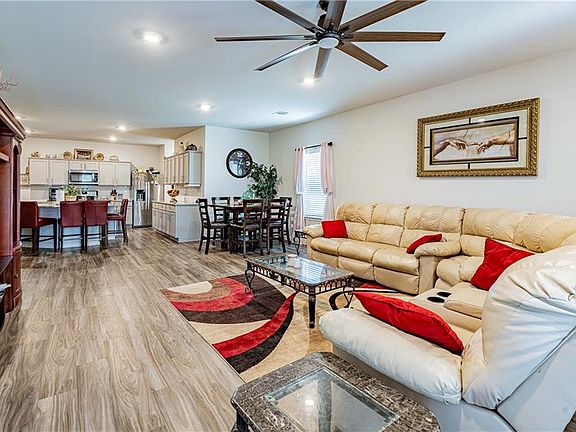 Spacious 4-bedroom, 2-bath home with an inviting open-concept design. The impressive kitchen features a massive slab granite island, stainless steel appliances, and sleek granite countertops, making it perfect for cooking and entertaining. The luxurious primary suite offers a huge walk-in closet, an oversized soaking tub, a separate shower, and plenty of storage. Designed for comfort, the triple-split floor plan provides privacy and functionality. Additional features include a whole-home Generac generator and a water filtration system. A large covered patio extends along the living room, offering great outdoor space. Located in a vibrant community with a resort-style pool and just minutes from I-12 off Hwy 22—this home is a must-see!