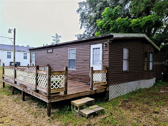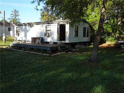 This 2-bedroom one bath home on a corner lot just a short distance from the St. Johns River is priced to sell! The cathedral ceilings of the open living room/dining room/kitchen area provide for a very spacious feel as you enter this cutie, which features wood laminate flooring throughout the entire home. The large kitchen includes all appliances, plenty of cabinets, and a Lazy Susan for maximum storage. The bedrooms are large, and both include cathedral ceilings, but the master bedroom also includes a very large walk-in closet while the second bedroom does not have a closet. Additional features include a large wooden deck on the front, a private rear deck, and an enclosed rear laundry room. The home appears to have been recently painted on the exterior and with just a little elbow grease this will be a mini mansion for sure. All measurements are approximate and should be independently verified.