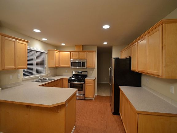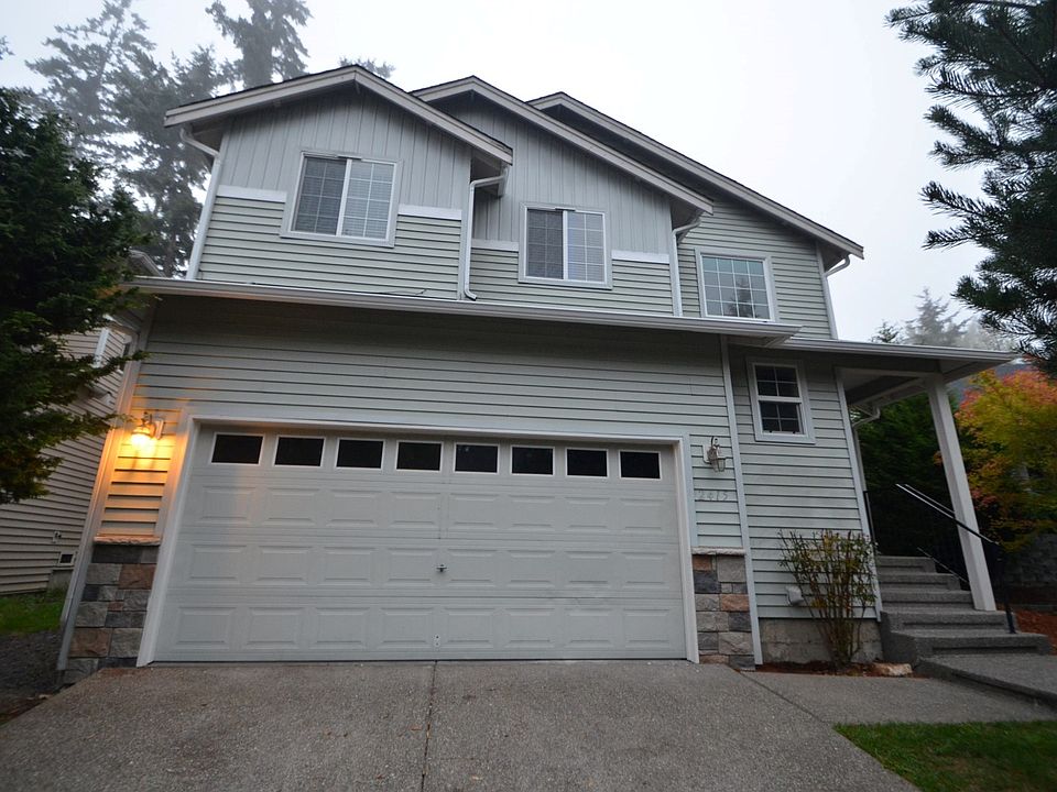 1 Week Free Rent!Excellent location! Easy access to arterials will make your commute quicker. This 4 bedroom, 3 bath home in the Lake Stickney area offers 1,937 square feet of freshly renewed living space across 2 floors.The main floor is light and bright with wood finish flooring and large windows for extra natural lighting. Den/family room has a cozy corner fireplace, adjacent dining room has new vinyl flooring, decorative pendant light overhead, and sliding glass door access to the backyard. The kitchen offers ample storage and counter space (including a breakfast bar), wood finish cabinetry and easy-care vinyl flooring. New/updated coordinating stainless steel kitchen appliances provided.Upstairs bedrooms have new plush carpeting and new window coverings along with great closet space. Large master bedroom has a vaulted ceiling, attached bathroom and huge closet.Additional features at this home include a second floor laundry room (saves extra stair climbing!), an attached 2-car gara