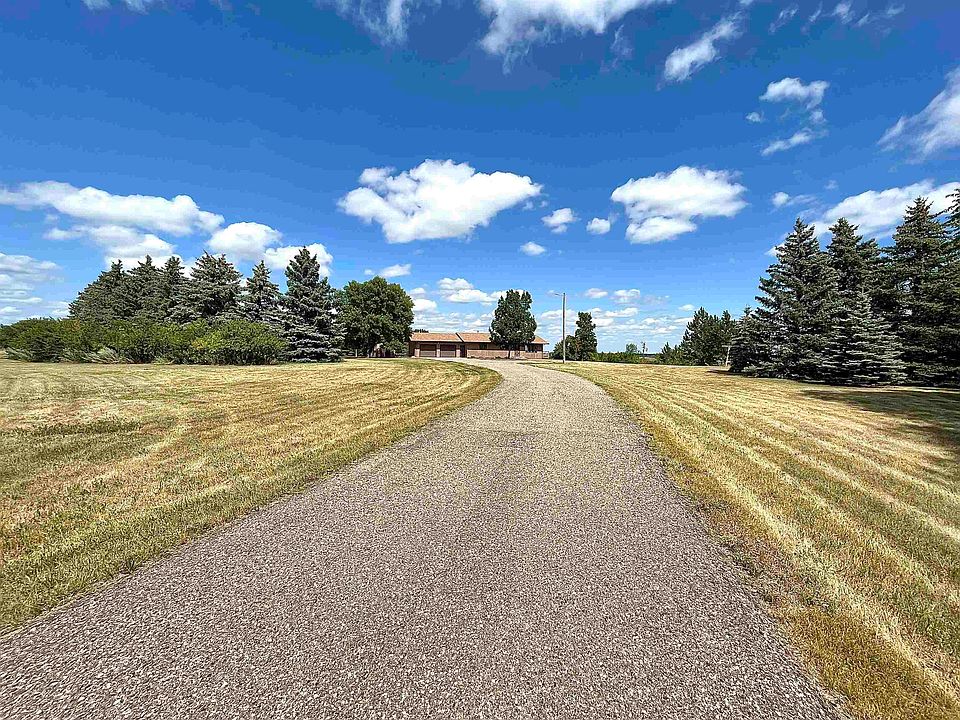 Don't miss out on this charming property east of Minot in Happy Valley. The wildlife, sounds of nature, abundance of trees, and views are breathtaking. As you enter the home you'll see the main floor features 2 beds, 1.75 baths, main floor laundry with the washer & dryer conveying, closet space galore, and a nice sized living room with lots of natural light and beautiful views. The dining room & kitchen are directly off the living room with the option of your dining room being on either side of the kitchen.. how cool is that?! Do you like to BBQ, read, or maybe drink your morning coffee in the sunshine?! Well, the deck is conveniently off the dining room so you can enjoy it all! Onto the basement, you will find the master bedroom and spare bedroom that is perfect for an office, workout room, or crafts. Down the hall is a HUGE storage room with lots of shelving, a workbench, and a connected utility room. The amount of storage in this home is amazing! Going back out into the basement living room you will find the patio doors leading out onto the patio that's ready for a few more bonfires. Don't wait to see this property, call your favorite agent today for a private viewing.