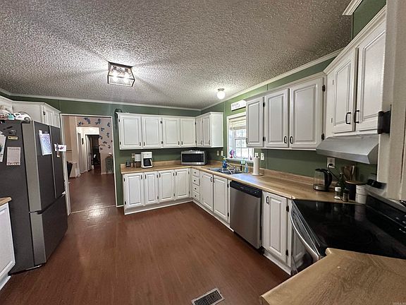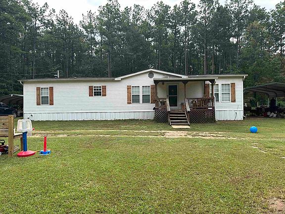 This property is perfect for those seeking tranquility and space in a beautiful country setting. Nice three-bedroom, two-bath mobile home with an addition, offering peaceful country living on 16 acres. The property features three metal carports, a storm cellar, and a shop area, providing plenty of storage and workspace. It's fully equipped for three camper trailers and includes a convenient circle drive for easy access. The home itself boasts newer stainless steel appliances, lots of cabinets, large closets, and a dedicated laundry room. The addition can serve as a versatile fourth bedroom or a home office, offering flexibility to fit your needs. Take the four-wheeler trails to your own stocked fishing pond or to your deer stand, complete with a feeder. Enjoy the serene outdoors with the privacy and space this property offers. Access to the property is through a gated entrance off Armstead Road, ensuring added privacy. The green outline is based on courthouse records (not a survey).