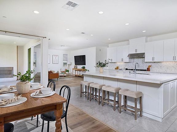 This expansive and elegantly designed residence offers 3,073 sq. ft. of living space, featuring four bedrooms plus a loft, three and a half bathrooms, a three-car garage, and owned solar system. The entry level includes a bedroom with a full bath and connected private living area is perfect for guests or home office. The open-concept floor plan boasts a gourmet kitchen with quartz countertops, walk in pantry, stainless steel appliances (including refrigerator), and an island that connects seamlessly to the dining and great room with flat screen TV. Upstairs, the home features a spacious loft, a primary suite that is your very own sanctuary with a walk-in closet, a spa-like bathroom, and step out onto your private balcony for rest and relaxation. There is also a dedicated laundry room equipped with a washer and dryer. The backyard is landscaped with low-maintenance turf enhanced with covered outdoor living area with a fireplace, perfectly blending indoor and outdoor spaces for the ideal California lifestyle. Situated in the serene Cota Vera community, residents may enjoy the playground, community pool, and dog park. This home provides a premium living experience marked by comfort and tranquility.