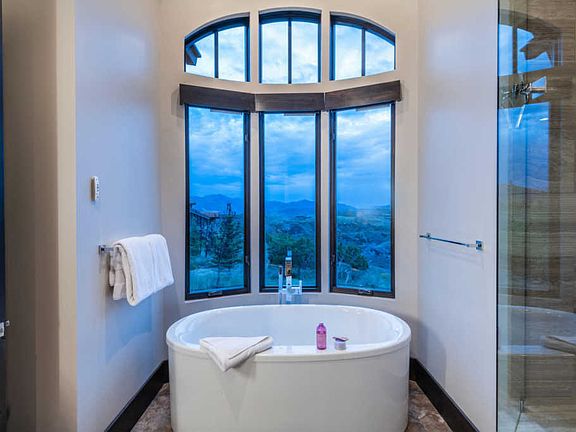 One of the best homes in Promontory recently built, turn-key and with sweeping views to the ski runs and the surrounding mountains. Be prepared to be impressed. There are soaring windows taking in the views and an amazing great room with a stone fireplace, beautiful kitchen with high-end stainless appliances and stunning light fixtures. The main floor master includes a bathroom with a tub taking in the views, a fireplace and a huge walk-in closet. There's also four additional bedrooms each with their own stylish bathroom. Enjoy the patios on both sides of the home -- and watching the sunset from the hot tub overlooking the canyon. There's a movie room, over-sized garage and a downstairs family room with a wet bar and more fantastic views. The high-end finishes of this home are top-of-the-line and complete the open concept home perfectly. The home comes fully-furnished with designer furniture carefully chosen by Ontario Design. Make Promontory your mountain playground!