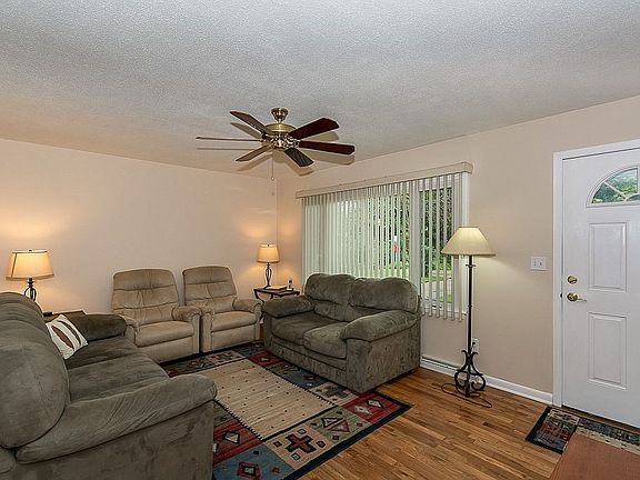 This clean, move-in ready ranch is located close to bike path, shopping, and new elementary school. The main level has hardwood and vinyl floors and conventional ceiling. Also on the main level are 3 bedrooms and a full bath. The kitchen features vinyl floors and laminate counters, and has a reverse osmosis water filtration system. Some cabinets feature slide-out shelves. Appliances stay with the home, including washer and dryer. The master bedroom is located on the main level and features hardwood floors. The mostly finished lower level features a large recreation area with new flooring, a nonconforming carpeted fourth bedroom, and a 3/4 bath. There is also a storage area, workbench, and laundry area. There is a one car attached garage. Outside you'll find a yard with mature trees. This home is not in the flood plain and is the only house on a dead-end street.