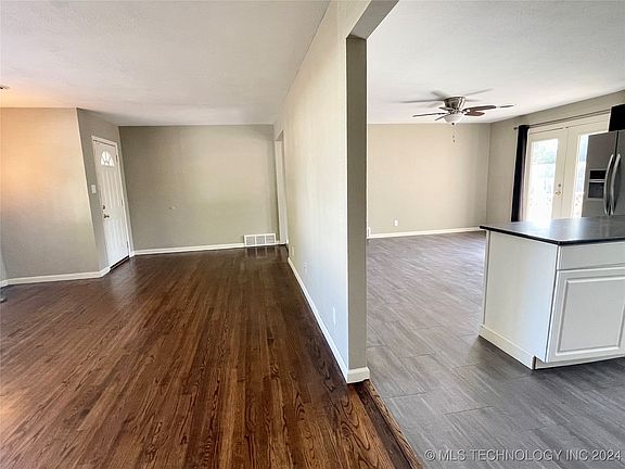 Gorgeous 3 bedroom, 2 bathroom home on East side of Muskogee! Home has large kitchen with island, tons of cabinet space, natural light, stainless steel appliances (including double oven), and beautiful vinyl flooring. Living room and bedrooms have stunning original hardwood floors in excellent condition. Large fenced back yard with entertaining deck. Oversized 2 car garage + so much more.