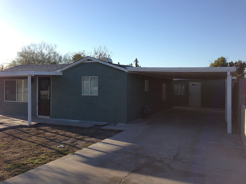This home has a great layout and a recent remodel. Not only will you love the new cabinets, granite counters, stainless appliances, wood and tile flooring, 2-tone paint, decorative doors and trim work, gorgeous front door, new dual pane windows, new 30 year roof, stucco exterior, but you'll surely love the fact that the 3rd bedroom and 2nd bath are in the detached ''Office'' in the rear. This becomes a great layout for so many uses; small business/ home office, guest quarters, etc. Imagine your own getaway in the rear of the carport area. Seller is open to paying the loan fees. Make your offer today!