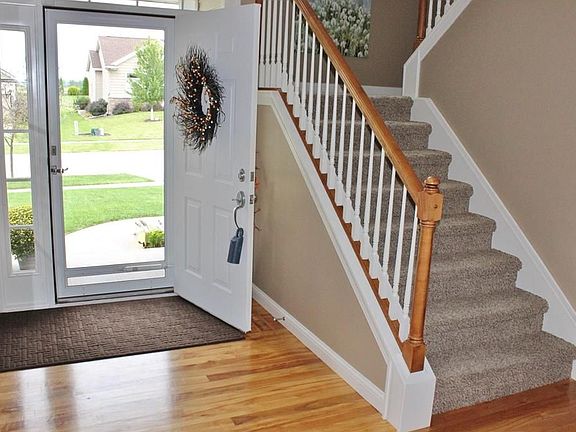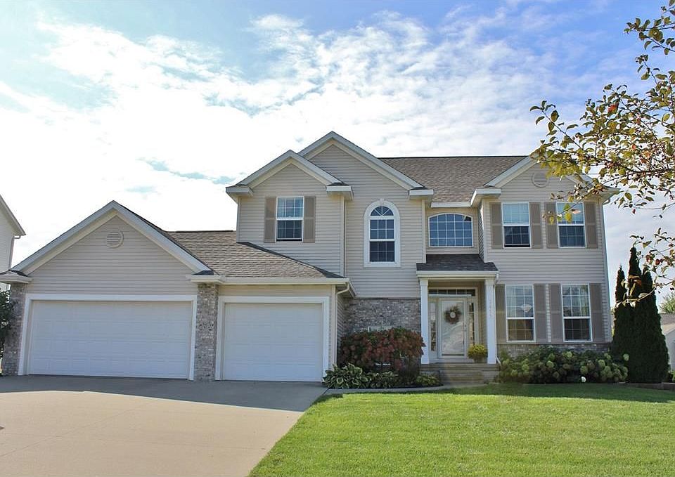 Fabulous 2-story located in a wonderful neighborhood with over 3537 finished sq ft, many upgrades, unique designs, detailed & meticulous! A gracious open floor plan with volume ceilings greet you in the foyer with wood flooring, adjacent main floor den/study with glass French doors to the spacious formal dining room with wood flooring & great room with fireplace flanked by built-ins and large picturesque window overlooking backyard. The gourmet kitchen features wood flooring, granite countertops, breakfast bar, walk-in pantry & stainless steel appliances. Main floor laundry with cabinet & adjacent half bath. Retreat to the upper level with wide staircase to the luxurious vaulted master suite with LARGE walk-in closet, private bath, double sink vanity, tile flooring, garden tub & walk-in shower. The daylight lower level impresses with spacious family/rec room, fifth bedroom, third bath & storage. Other extra amenities include, security system, Kinetico water softener, deck, large patio with exterior stamped edge. Close to elementary school, grocery store, park, shopping & countryside views. Shingles are one year old.