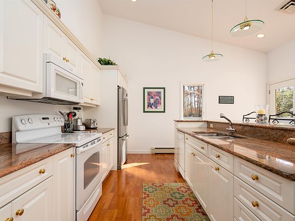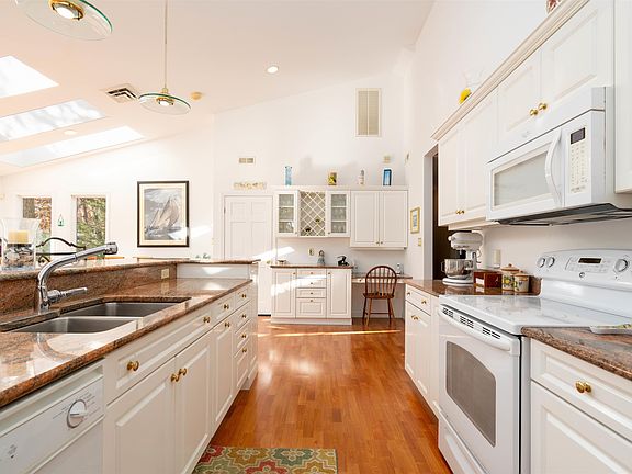 IMPRESSIVE! You will fall in love with this well kept 3 Bedroom Ranch style home, move in ready! The addition/ renovations to home were made to property in 1998. Entering the asphalt paved driveway and front entrance to the home adorned with decorative pavers, you will feel right at home in the spacious Living Room with cathedral ceiling, brick wood burning fireplace, and large front picture windows allowing the natural light to enter. Your dream Kitchen is steps away with cathedral ceiling highlighting 6 skylights, ample cabinet space, including pantry closet, granite countertops, large island for extra seating, separate wine/ beverage area, and open to the dining area and conversation nook. French doors lead to the wooden rear deck perfect for entertaining family and friends. Large backyard a plus with detached garage. Partially finished basement includes laundry room, workout room and plenty of room for woodworking/ crafts. Other highlights include inground sprinkler system, generator hookup, newer central air unit, recessed lighting and cedar closets throughout the home. Wood floors under carpeting. Call today to schedule your private tour.