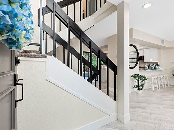 Wow! Interest rates got you down This is your house! *Special Financing Available - 2% interest deduction for 1st year, 1% interest rate deduction for 2nd year - Call for details* Just move in and enjoy this Amazing expansive remodel showcasing today's fashionable trends. Stunning, redesigned 1,726 sq. ft. 2-bedroom, bonus room, 2.5 bath La Costa townhome is nestled in one of most desirable communities with beautiful mature trees and landscaping. Better-than-new, this designer-inspired home is perfect as a full-time residence or second home. There are views from every room in the house-no staring at your neighbor's wall here. Enjoy the sunrise with your Morning coffee on the front balcony, then after a long day, the secluded and shaded back patio offers the perfect area for winding down. Drive into your freshly painted direct access two-car garage on the ground level where you will enjoy a spacious entryway, modern laundry room with barn door, a bonus room being used as a game room, and an abundance of storage. On the second level of the home, you will find the spacious elegance you desire with a dramatic floating stairway featuring modern black/white railing, an open-concept area that includes a bright stylish kitchen with bar seating adjacent to the dining room, large living room, a stack stone gas fireplace, a guest bath, and the front balcony and back patio. The top floor features the soaring ceilings of the primary oversized retreat with fabulous walk-in closet and glamour bath that includes dual sink vanity, walk-in shower, and soaking tub with a view. You will admire the view of greenery from the secondary bedroom with ensuite bathroom that is perfect as 2nd bedroom or guest suite. The hallway has floor to ceiling storage for all your belongings. Tall windows allow an abundance of natural light to flow through both the second and third levels. The room sizes and ceiling heights make it comfortable for everyday living and, at the same time, perfect for entertainment. This contemporary townhome offers gorgeous designer finishes throughout that today's discerning buyers want. You will love the luxury vinyl plank flooring, and clean white paint throughout. The new modern open gourmet kitchen showcases white soft close cabinetry, gorgeous marble countertops, single basin sink with designer faucet, a huge peninsula with barstool seating and chef-inspired stainless-steel appliances including a sleek low-profile microwave, AND hi-efficiency range. Admire the Matte black designer lighting, cabinet hardware and faucets coupled with new door hardware that adorn new shaker doors throughout home. The gorgeous White and blue/gray Marble top vanities give that special designer flair. Couple this with the soft gray Luxury Vinyl Plank flooring, textured carpeting on the floating staircase and the stacked stone floor to ceiling fireplace--oh my! Add the 2 new barn doors in lower level of your private bonus and laundry room and you are set. Don't forget the all-important professional painting- on walls, ceilings, new doors and door casing, and modern wide baseboards. We didn't forget to add the new HVAC system that was moved to the attic for quiet comfort and a new gas water heater. The Full-length private Patio is accessed from the kitchen and has a view of the golf course for evening relaxing while the east facing balcony streams morning sunlight and offers a beautiful view of the Condo, pool, grassy area, and pool. So Cal Coastal Living at its Best. Just 3 miles to the beach. Hurry and get this Better-than-New Luxury townhome in a quiet location near Omni La Costa Resort and Spa. It is only minutes to the beach and just a short drive to all the charm of Encinitas shopping and delicious restaurants. This gorgeous townhome is beautiful and ready for you to move right in and enjoy. Oh, and don't forget, it has great schools! Perfect.